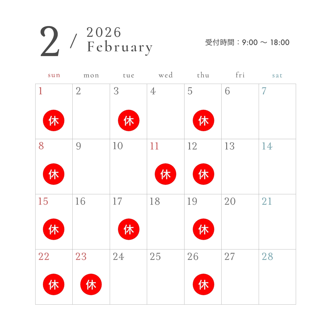 2月の営業日についてお知らせいたします。